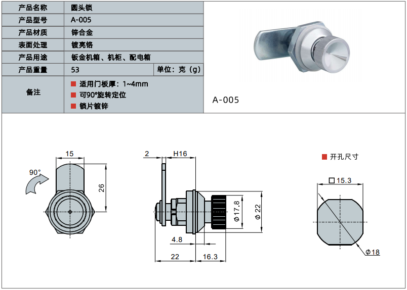 产品名称:圆头锁
