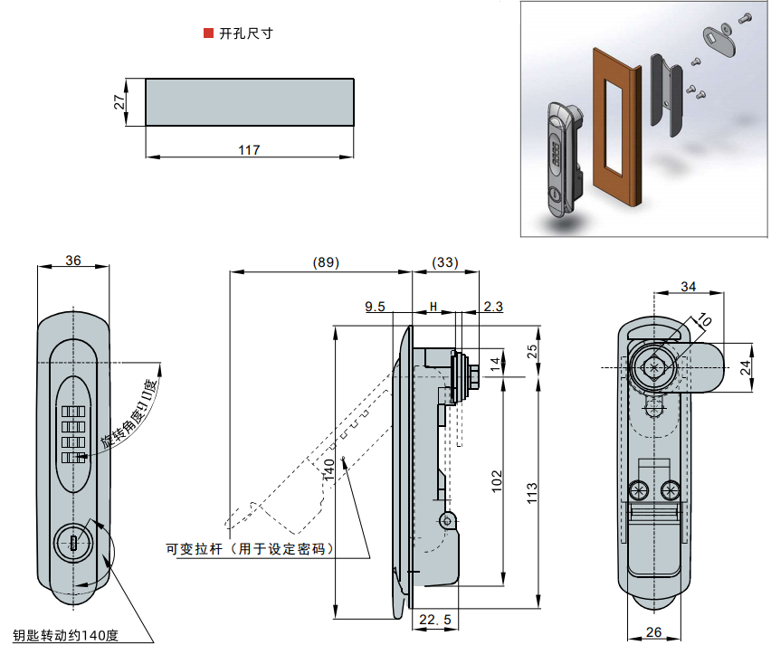 2、当遗忘密码时,可用钥匙开锁重置密码