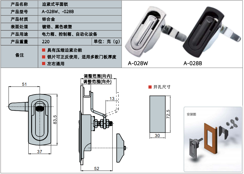 产品名称:迫紧式平面锁