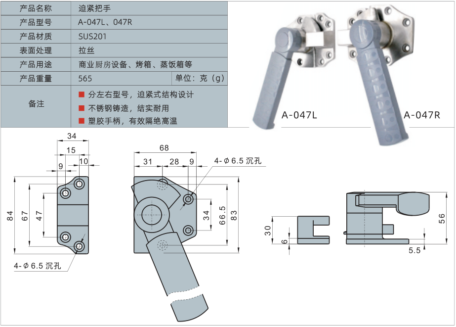 产品用途:商业厨房设备、烤箱、蒸饭箱等