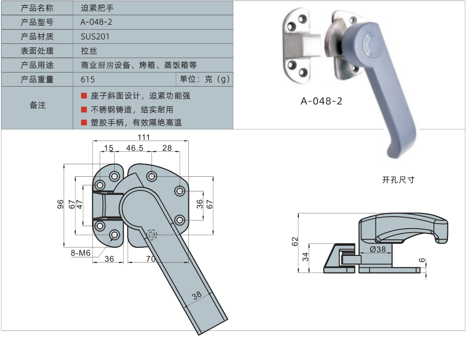 产品用途:商业厨房设备、烤箱、蒸饭箱等