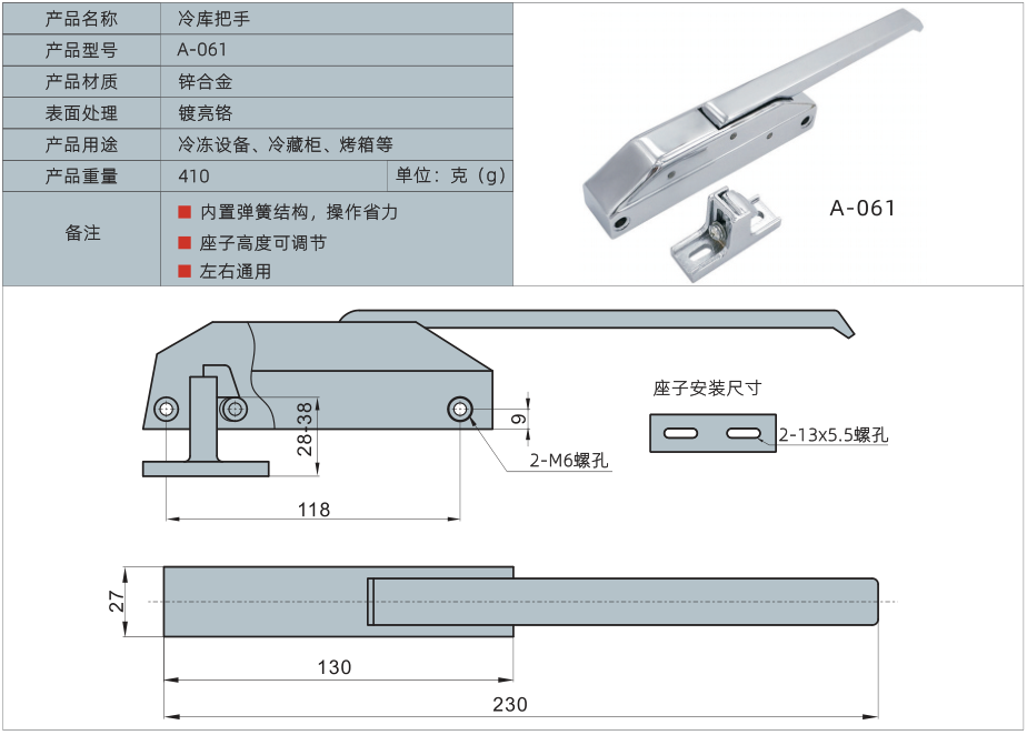 产品名称:冷库把手