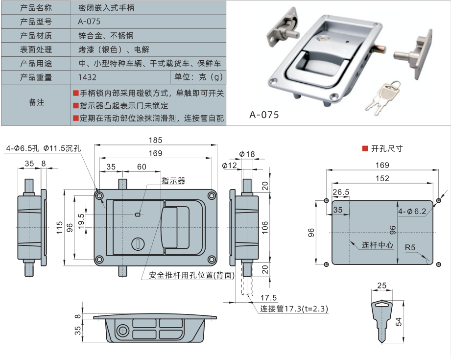 1、手柄锁内部采用碰锁方式,单触即可开关