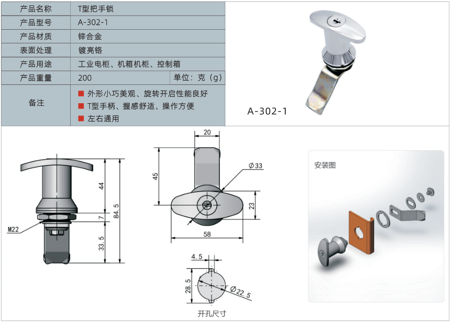 产品名称:T型把手锁