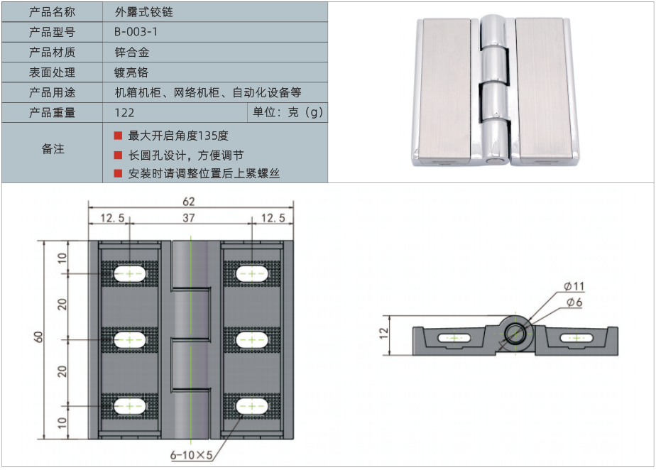 1、最大开启角度135度