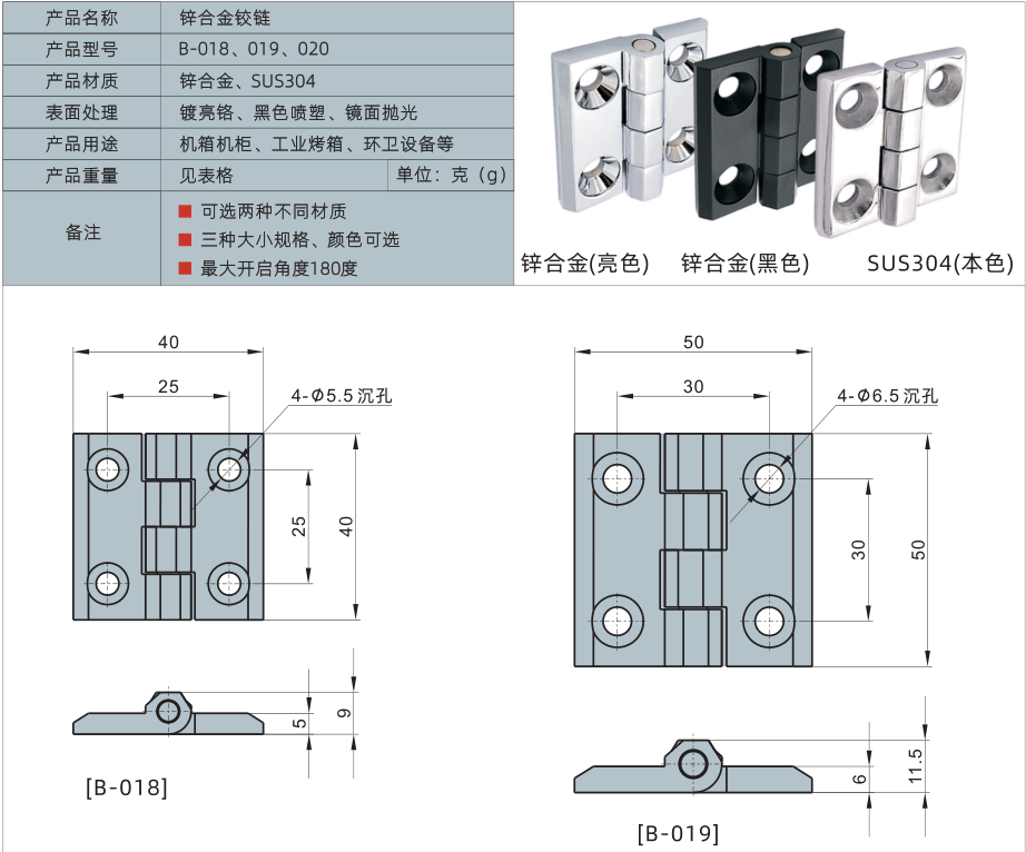 产品材质:锌合金、不锈钢SUS304