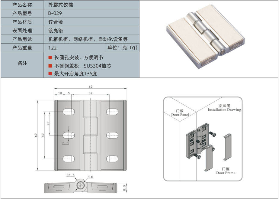 产品名称:外露式铰链