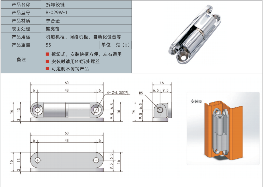 产品名称:拆卸铰链