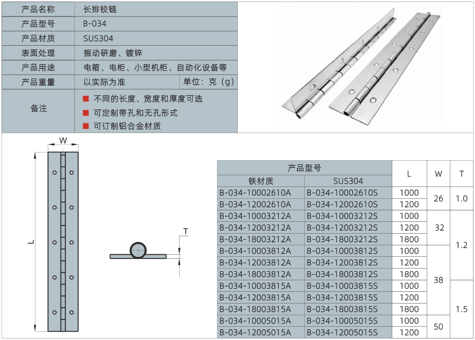 产品名称:长排铰链