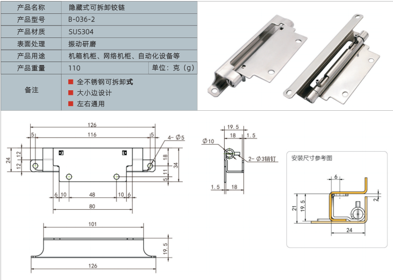 产品名称:隐藏式可拆卸铰链