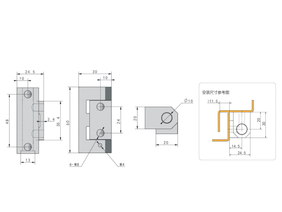 尺寸图上单位为毫米