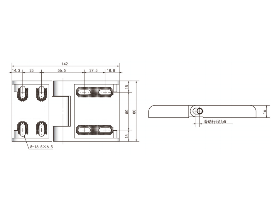 2、轴心长圆孔设计,可滑动一定距离
