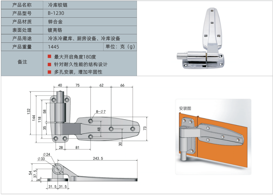 产品名称:冷库铰链