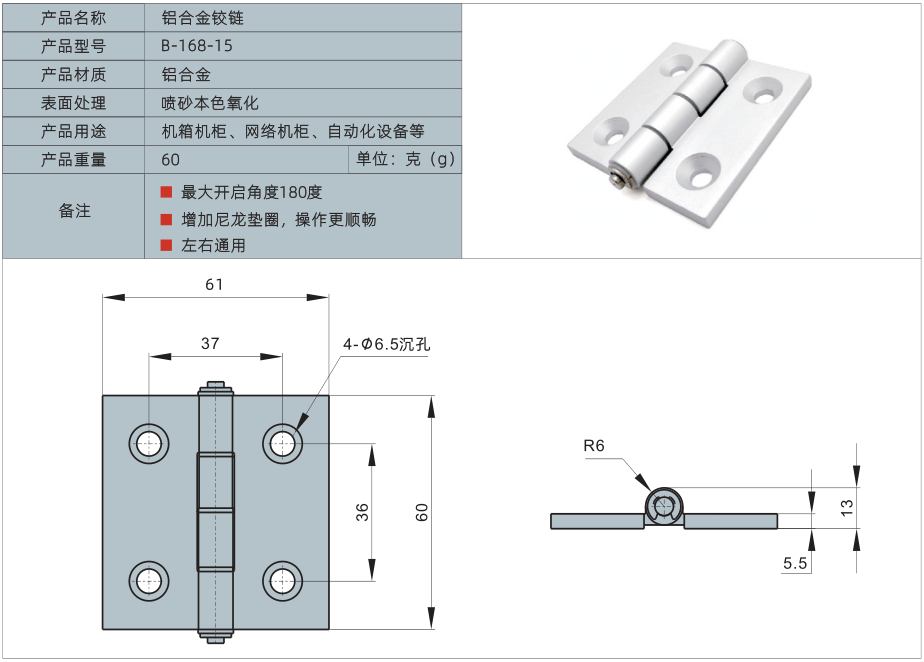 产品名称:铝合金铰链