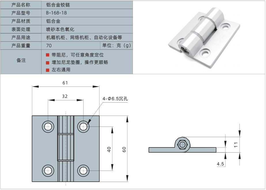 产品名称:铝合金铰链