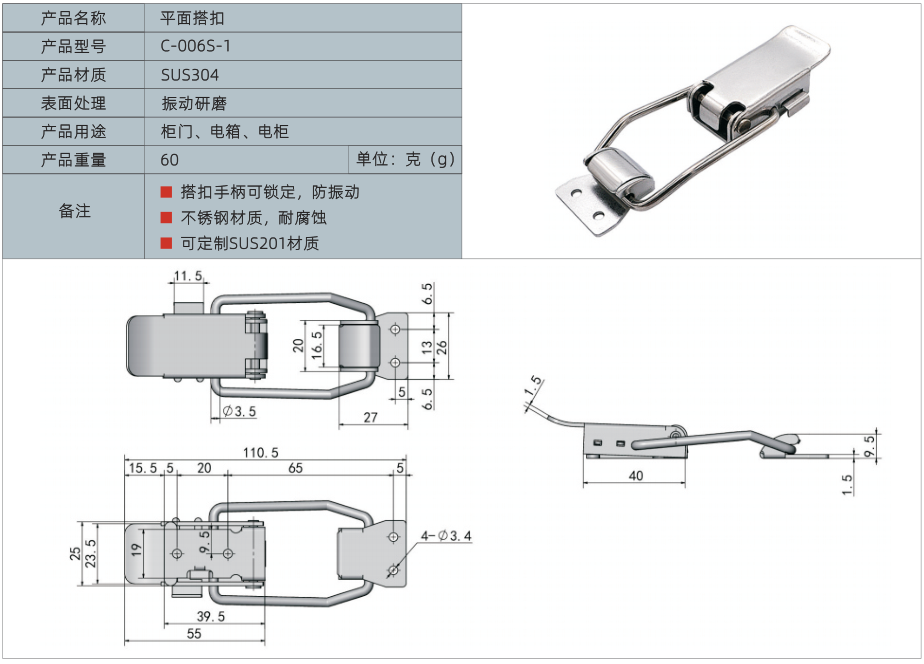产品名称:平面搭扣