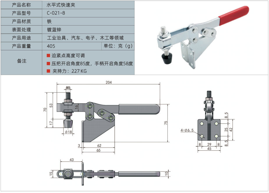 产品名称:水平式快速夹