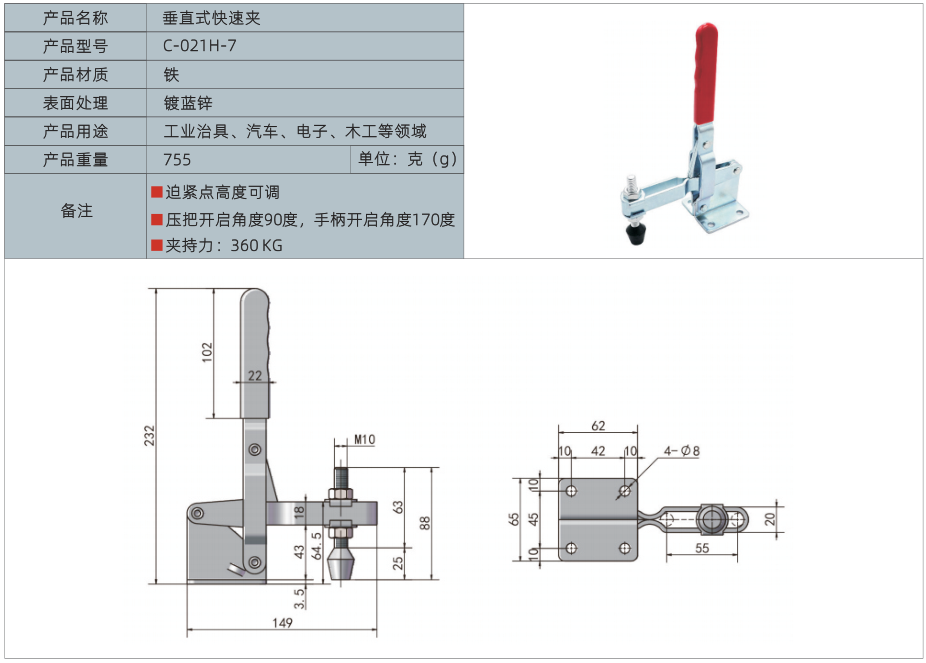 3、夹持力360KG