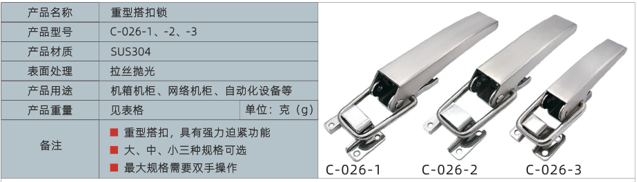 1、重型搭扣,具有强力迫紧功能