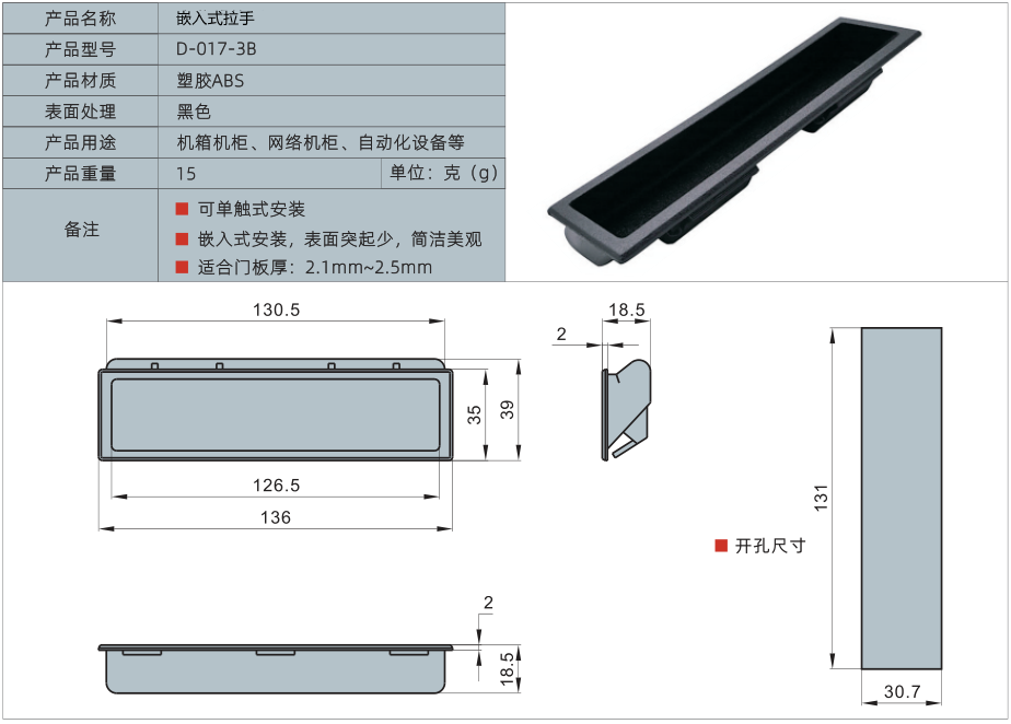 产品名称:嵌入式拉手