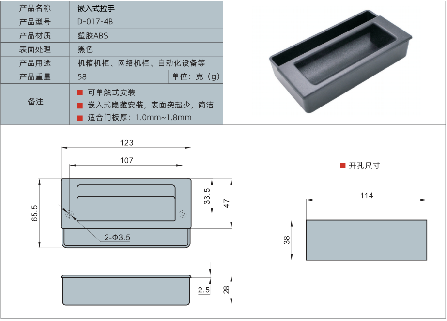 3、适合门板厚1-1.8毫米