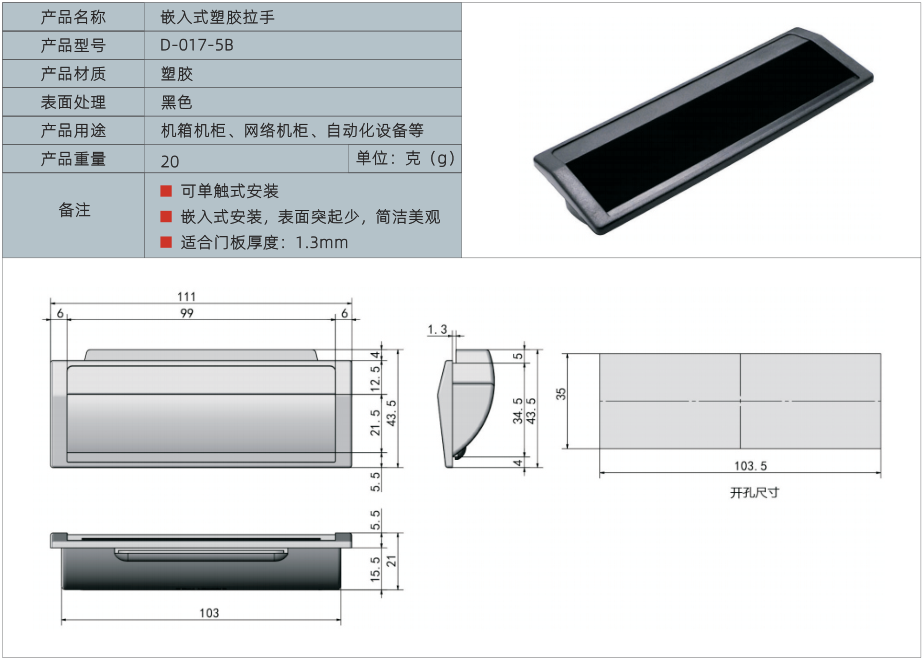 产品名称:嵌入式塑胶拉手
