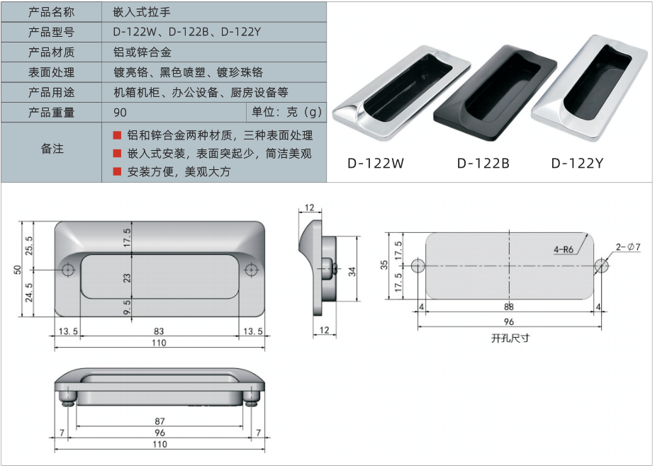 产品名称:嵌入式拉手