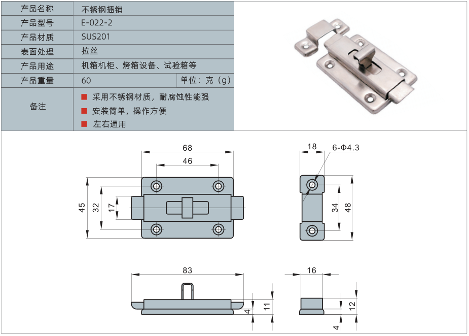 产品名称:不锈钢插销