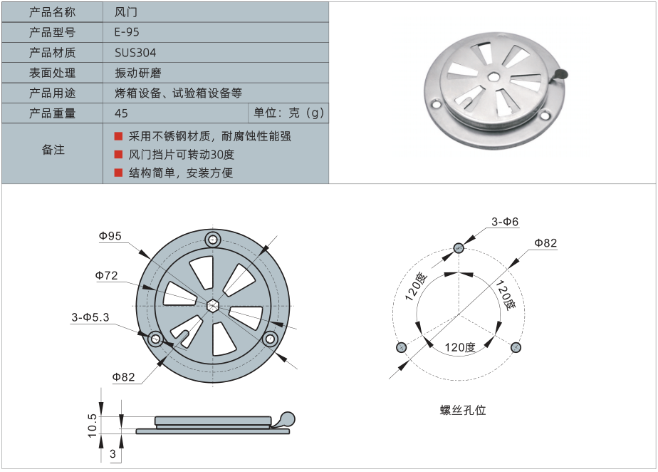 2、风门挡片可旋转30度