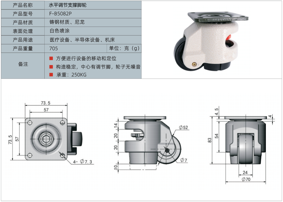 产品名称:水平调节支撑脚轮