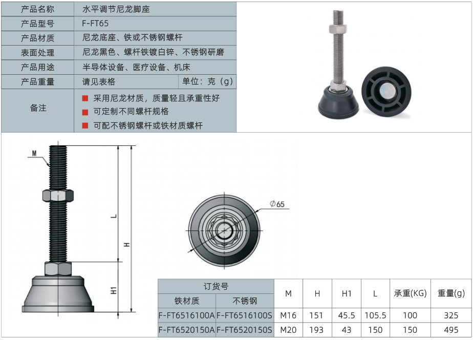 产品材质:尼龙底座、铁或不锈钢材质螺杆
