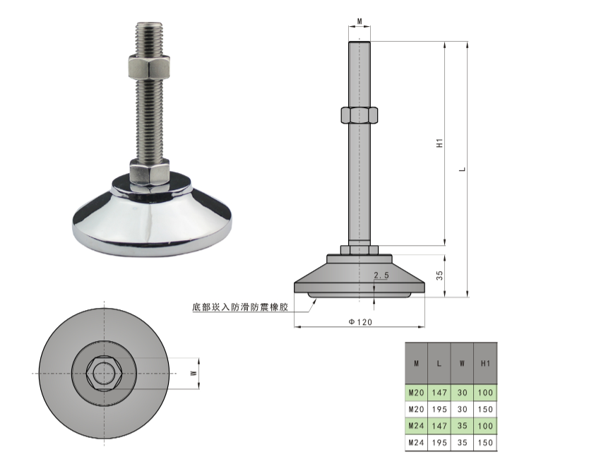 2、底部与底板接触面积大,配有橡胶脚垫,防震防滑,不易损伤地面