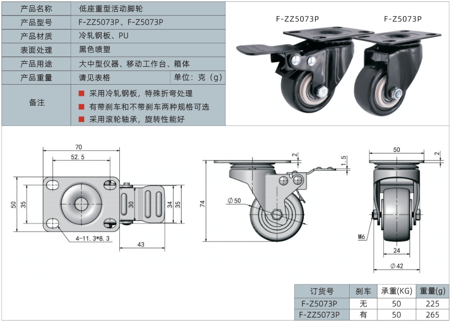 2、有带刹车和不带刹车两种规格可选
